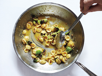 Get the Recipe: Orecchiette Carbonara with Charred Brussels Sprouts